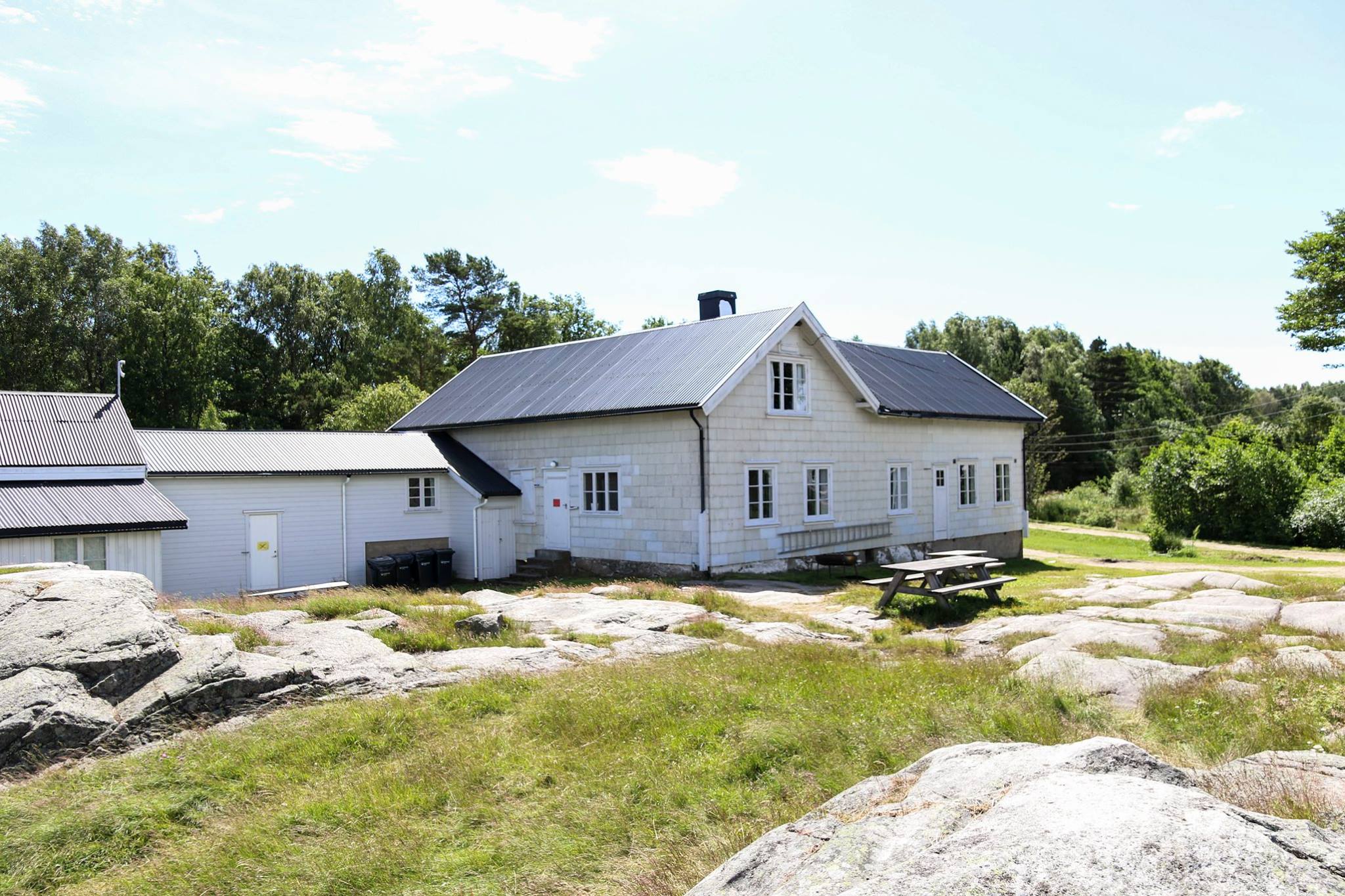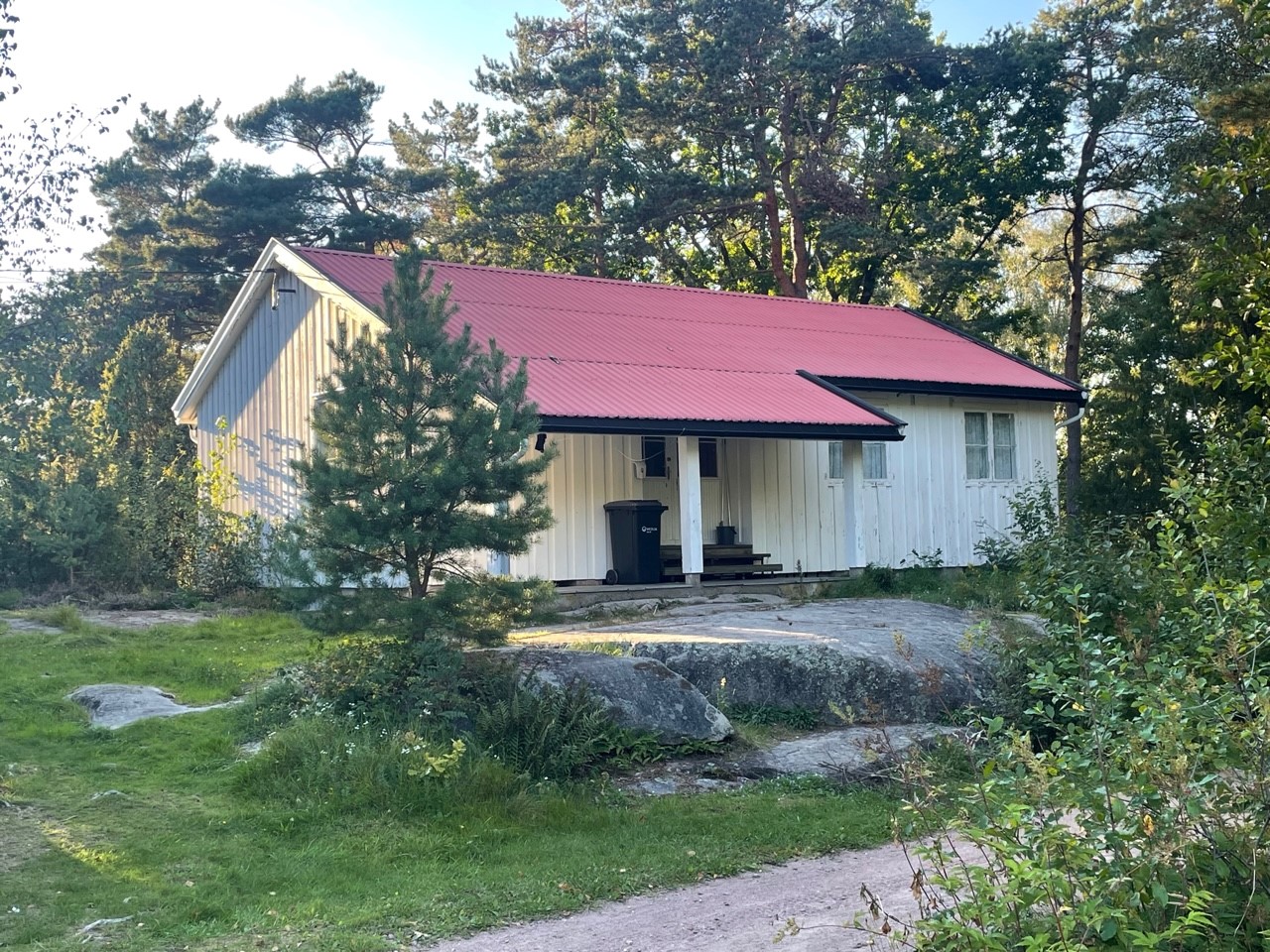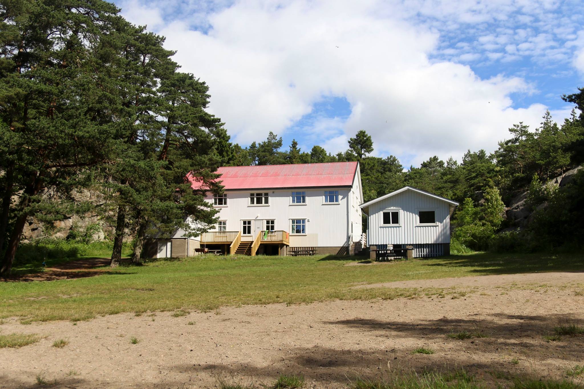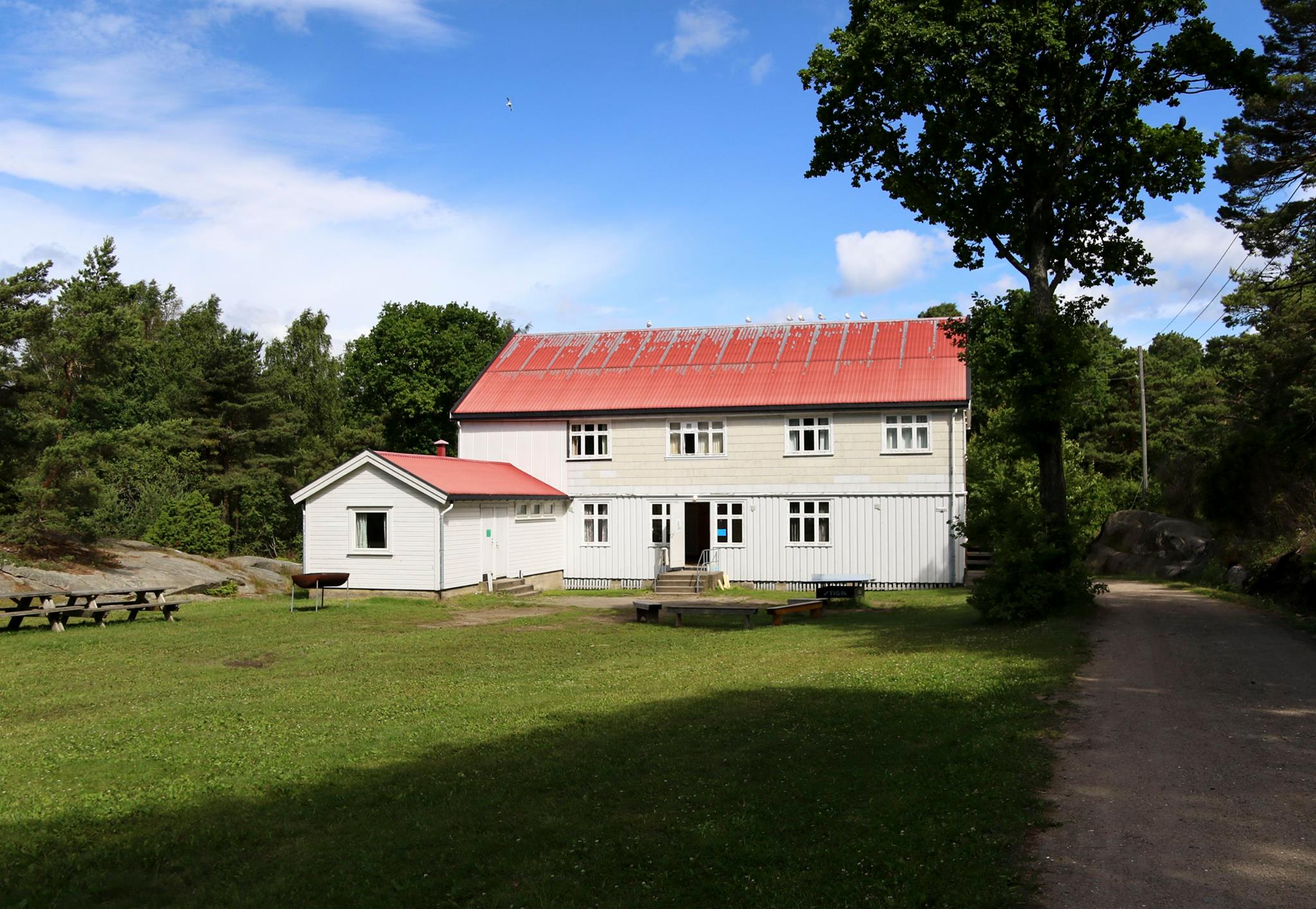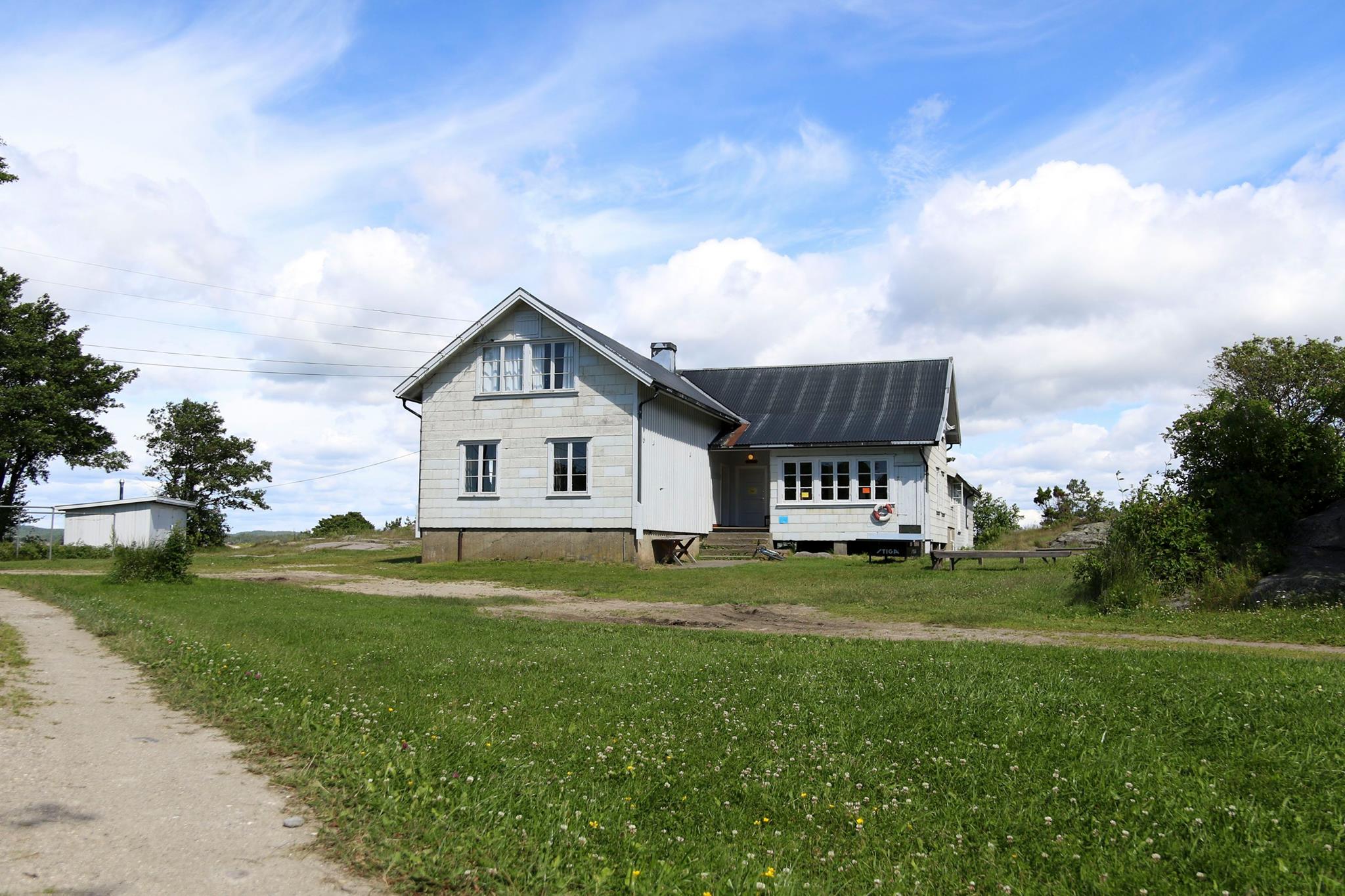 Leies kun ut sammen med en koloni. Ligger litt skjermet i skogen inne på øya. 10 sengeplasser.