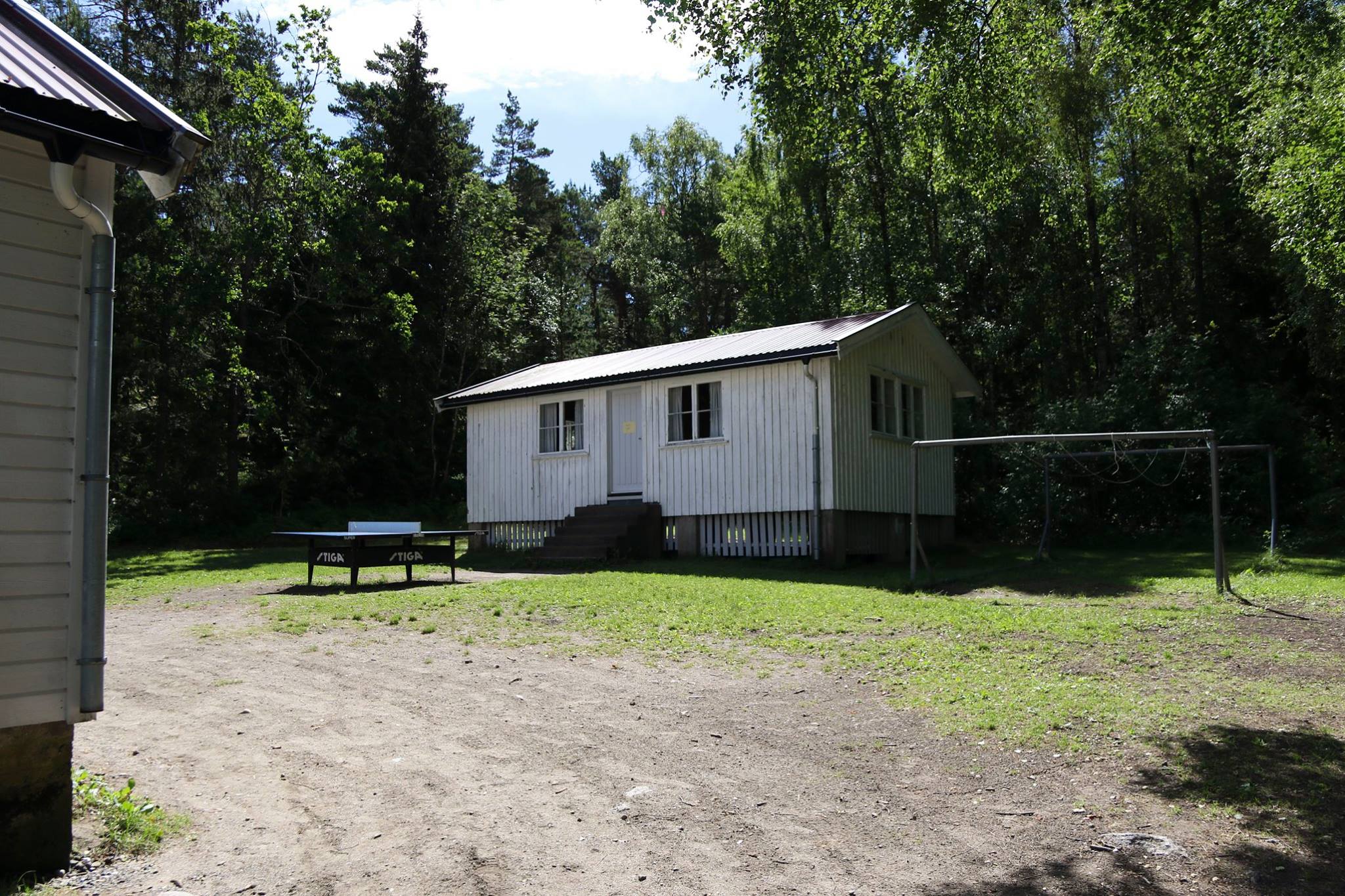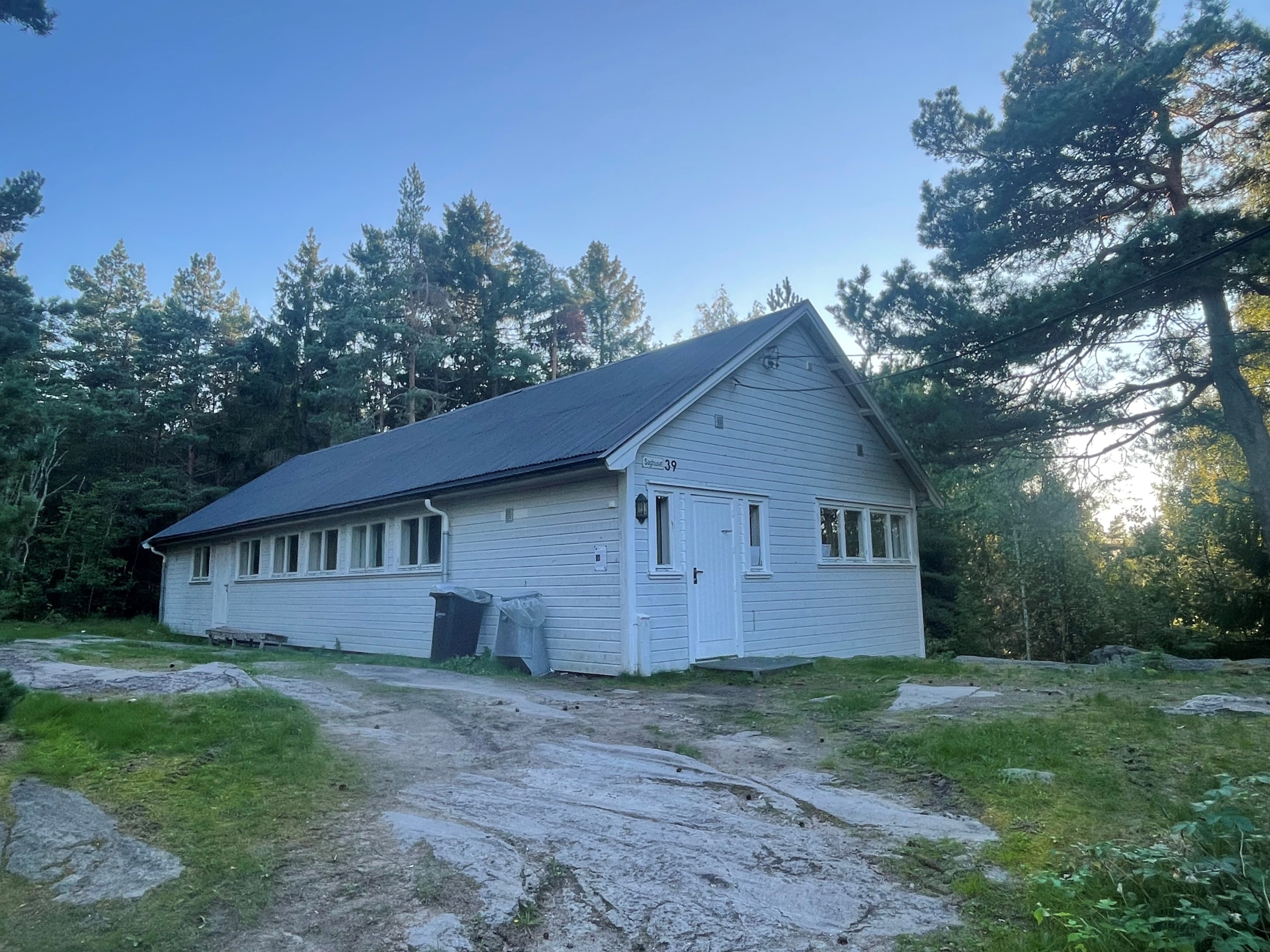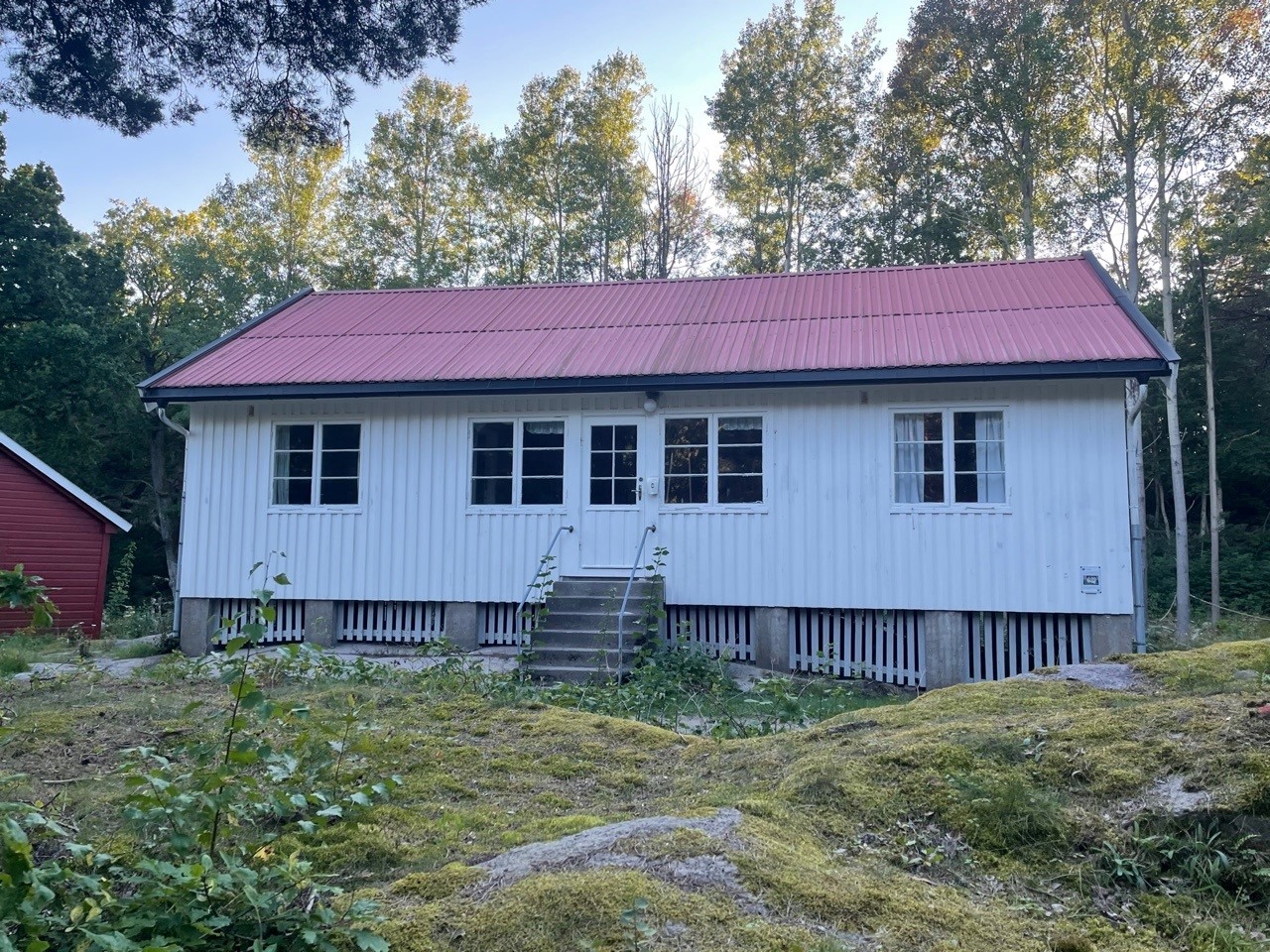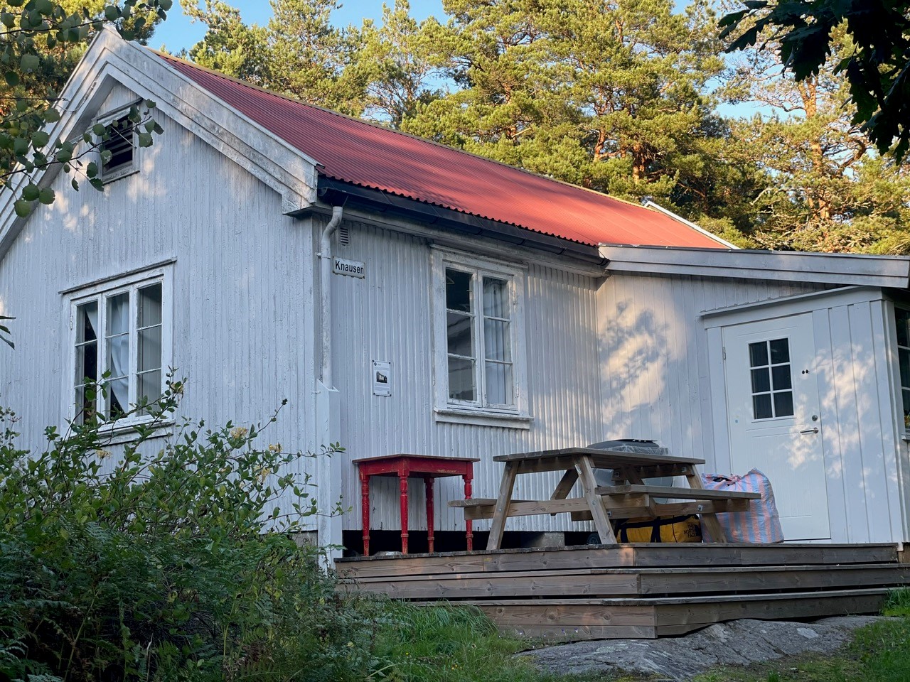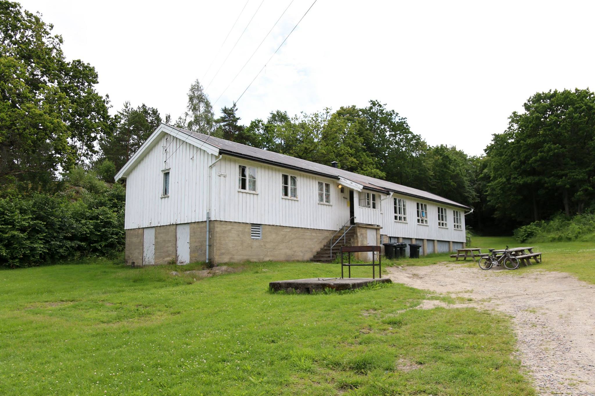 Leies kun ut sammen med en koloni. Ligger litt skjermet i skogen inne på øya. 10 sengeplasser.