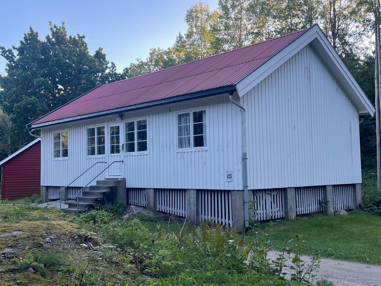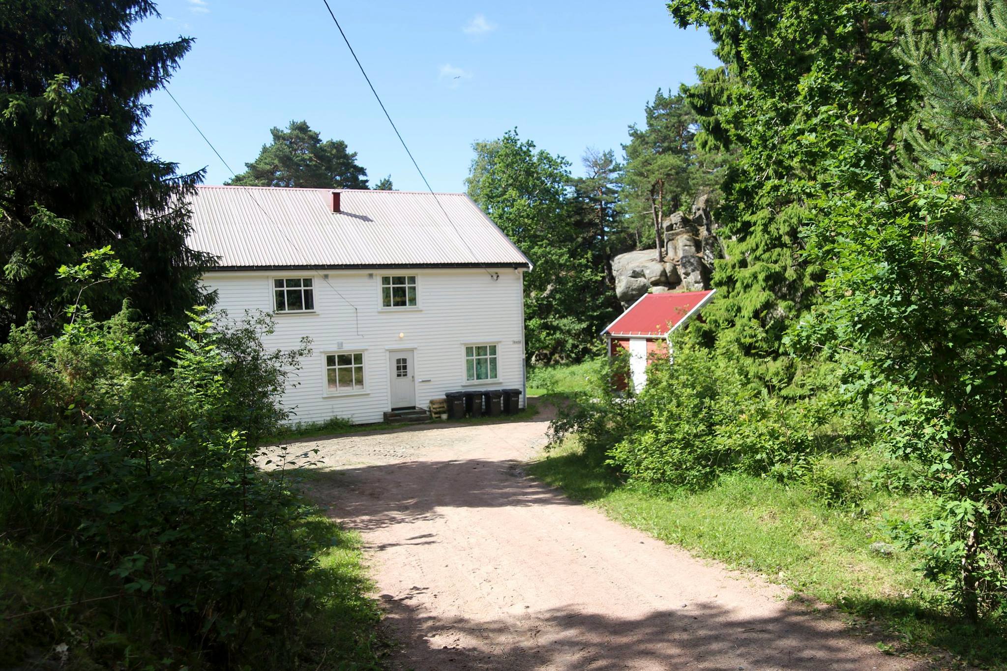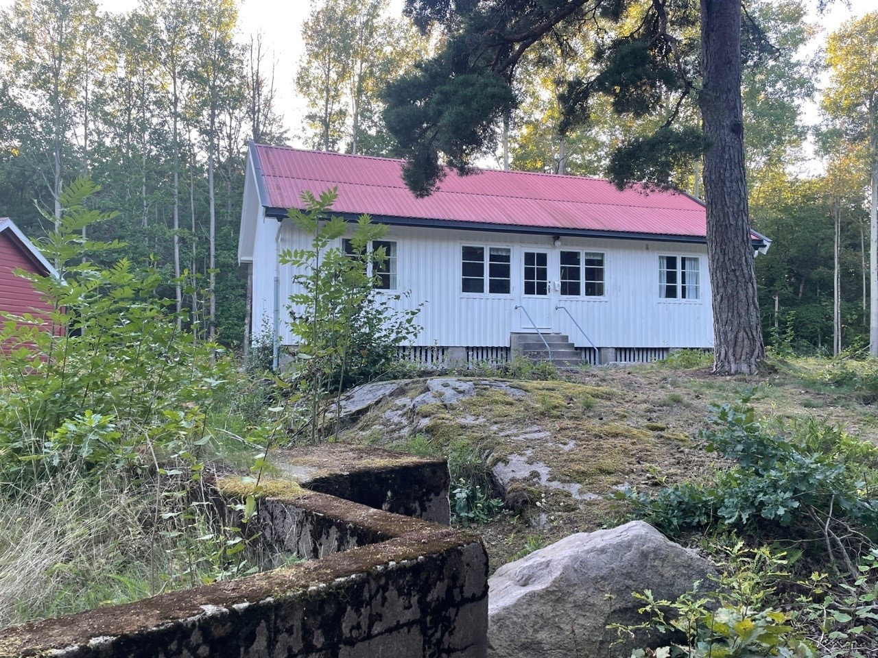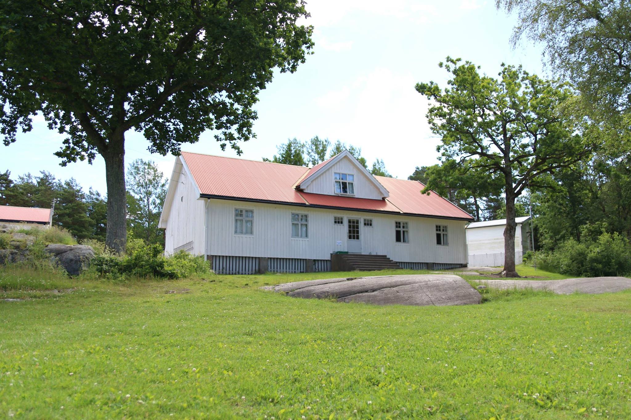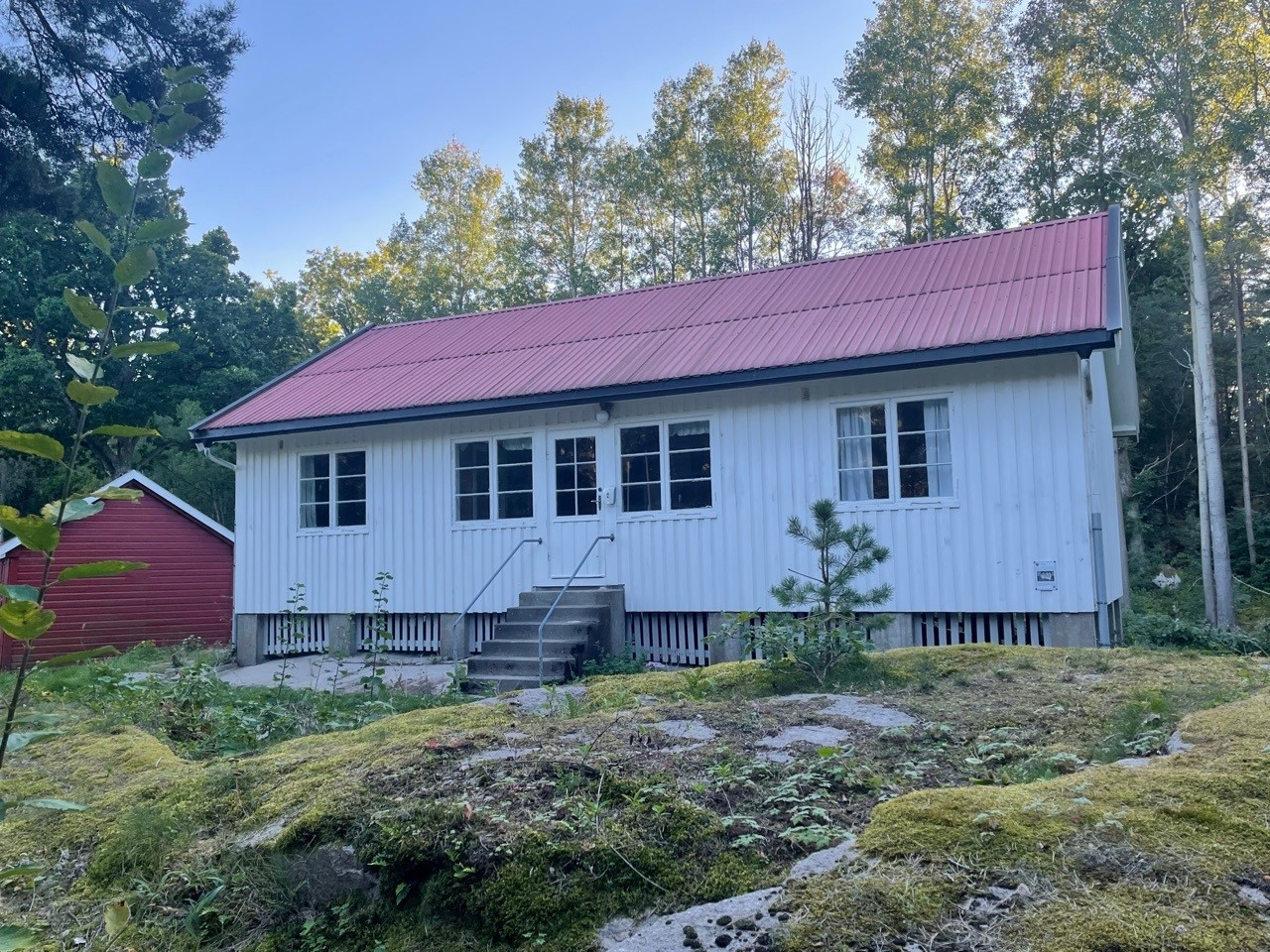 Leies kun ut sammen med en koloni. Ligger litt skjermet i skogen inne på øya. 10 sengeplasser.