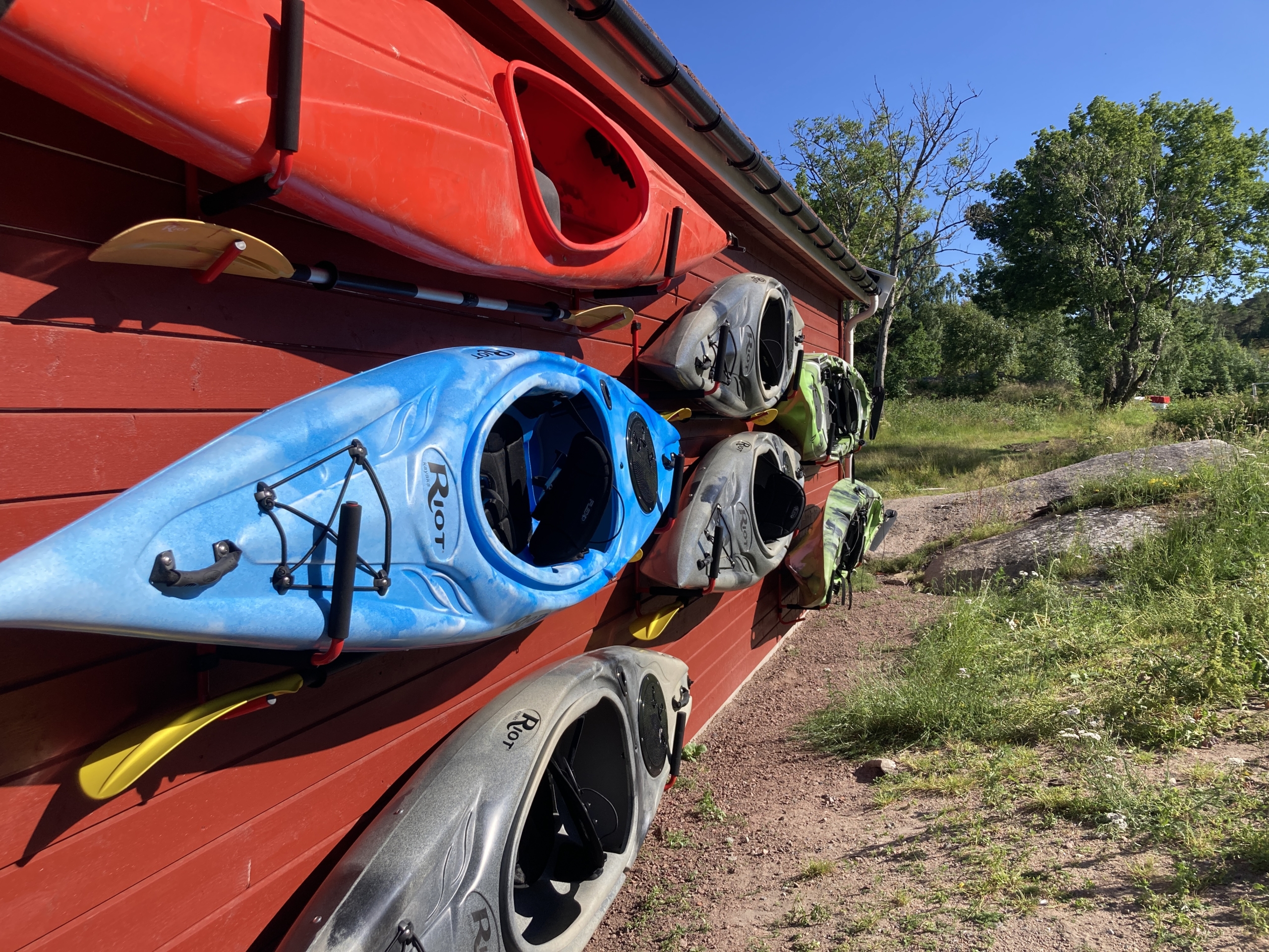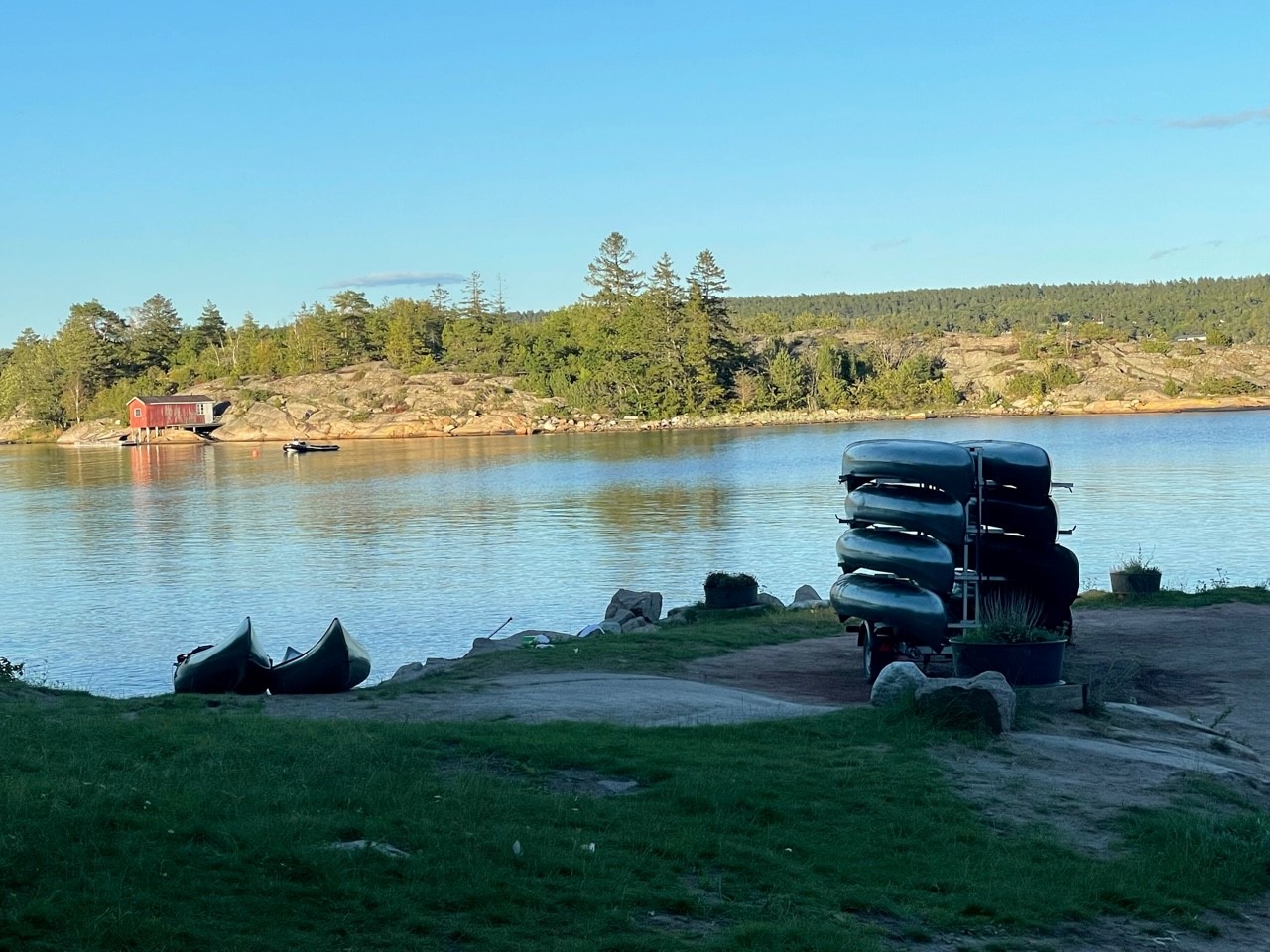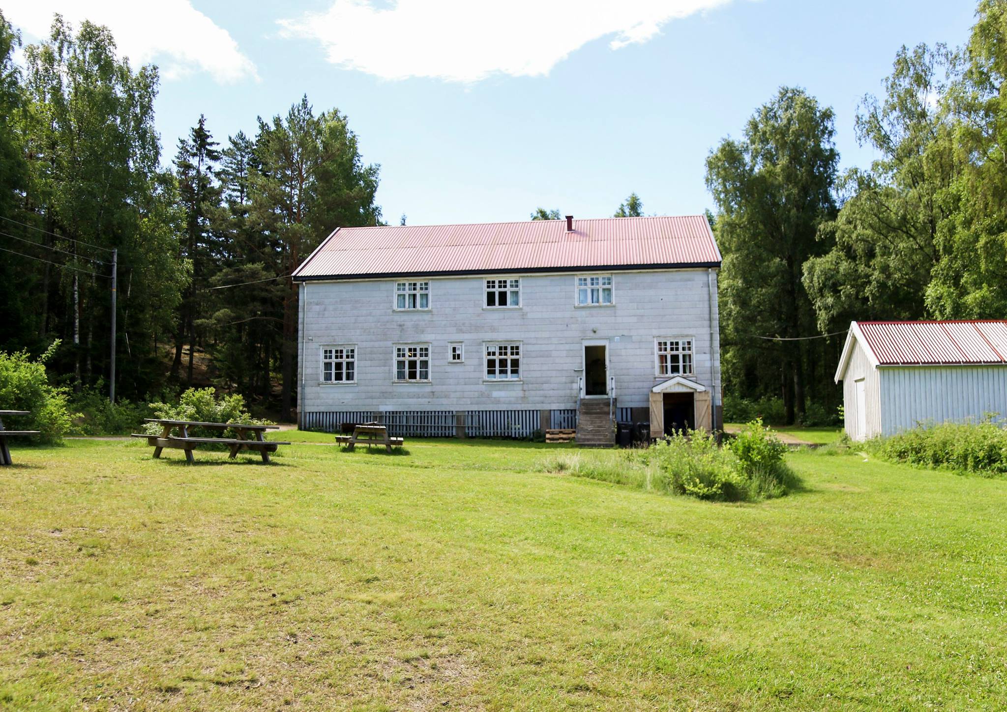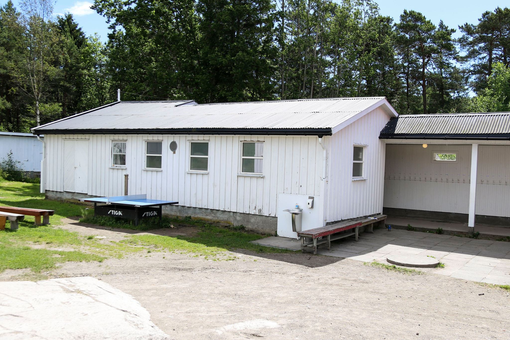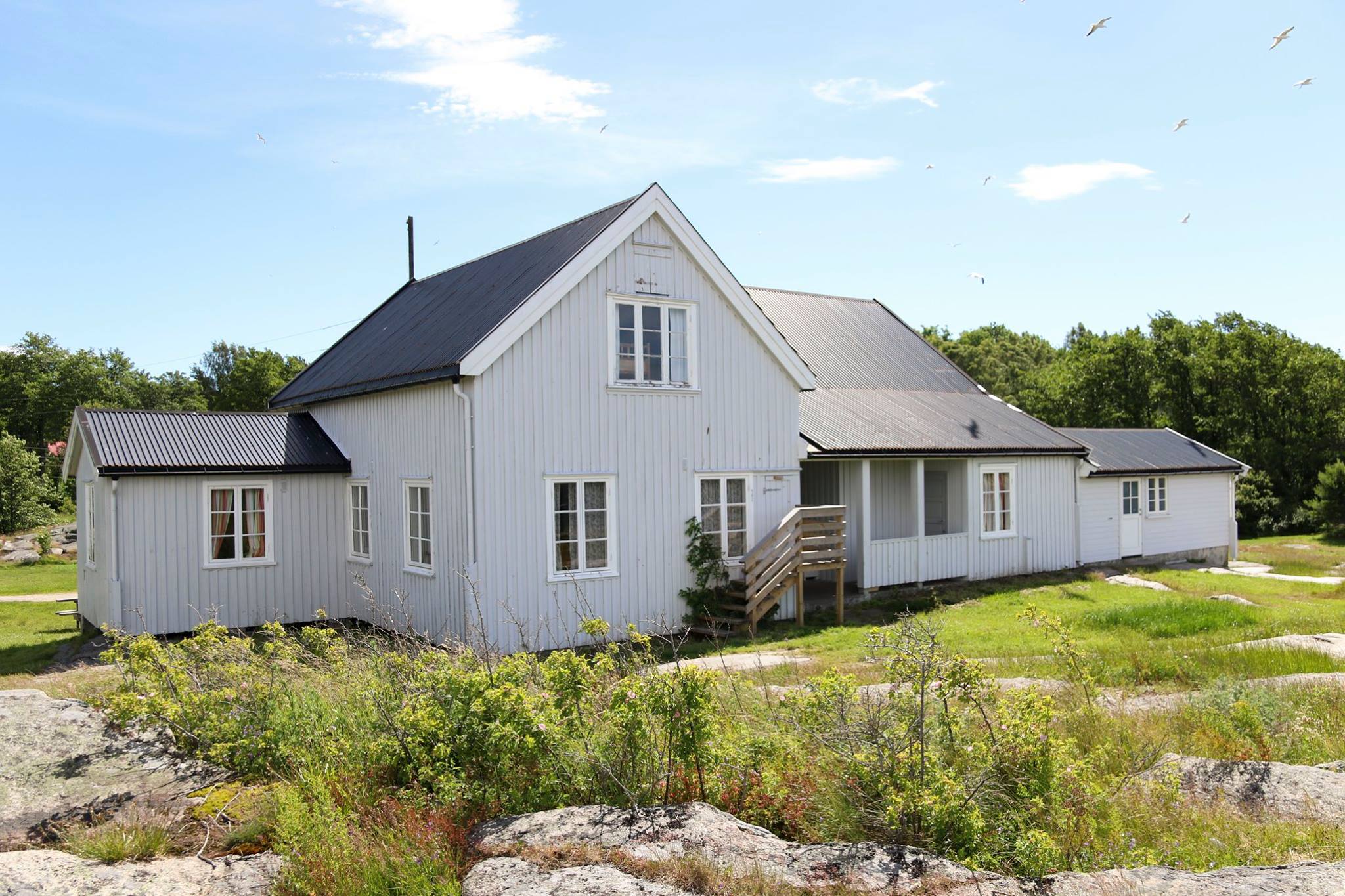 Leies kun ut sammen med en koloni. Ligger litt skjermet i skogen inne på øya. 10 sengeplasser.
